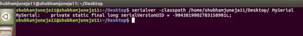 Serializovatelná třída může deklarovat své vlastní UID explicitně deklarováním názvu pole. Musí být statický, konečný a typu dlouhý. tj. ANY-ACCESS-MODIFIER static final long serialVersionUID=42L; Pokud serializovatelná třída explicitně nedeklaruje serialVersionUID, pak serializační runtime vypočítá výchozí hodnotu pro tuto třídu na základě různých aspektů třídy, jak je popsáno ve specifikaci Java Object Serialization Specification. Důrazně se však doporučuje, aby všechny serializovatelné třídy explicitně deklarovaly hodnotu serialVersionUID, protože její výpočet je vysoce citlivý na detaily třídy, které se mohou lišit v závislosti na implementacích kompilátoru, jakákoli změna třídy nebo použití jiného id může ovlivnit serializovaná data. Doporučuje se také použít soukromý modifikátor pro UID, protože to není užitečné jako zděděný člen. serialver Serialver je nástroj, který je dodáván s JDK. Používá se k získání čísla serialVersionUID pro třídy Java.